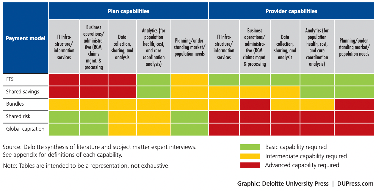 I believe the future of EHRs will involve a bifurcation between teams focused on volume and those concerned with value. This is illustrated in the chart above, where providers assuming risk require more sophisticated tools for data collection, analysis, and planning compared to those handling fee-for-service.